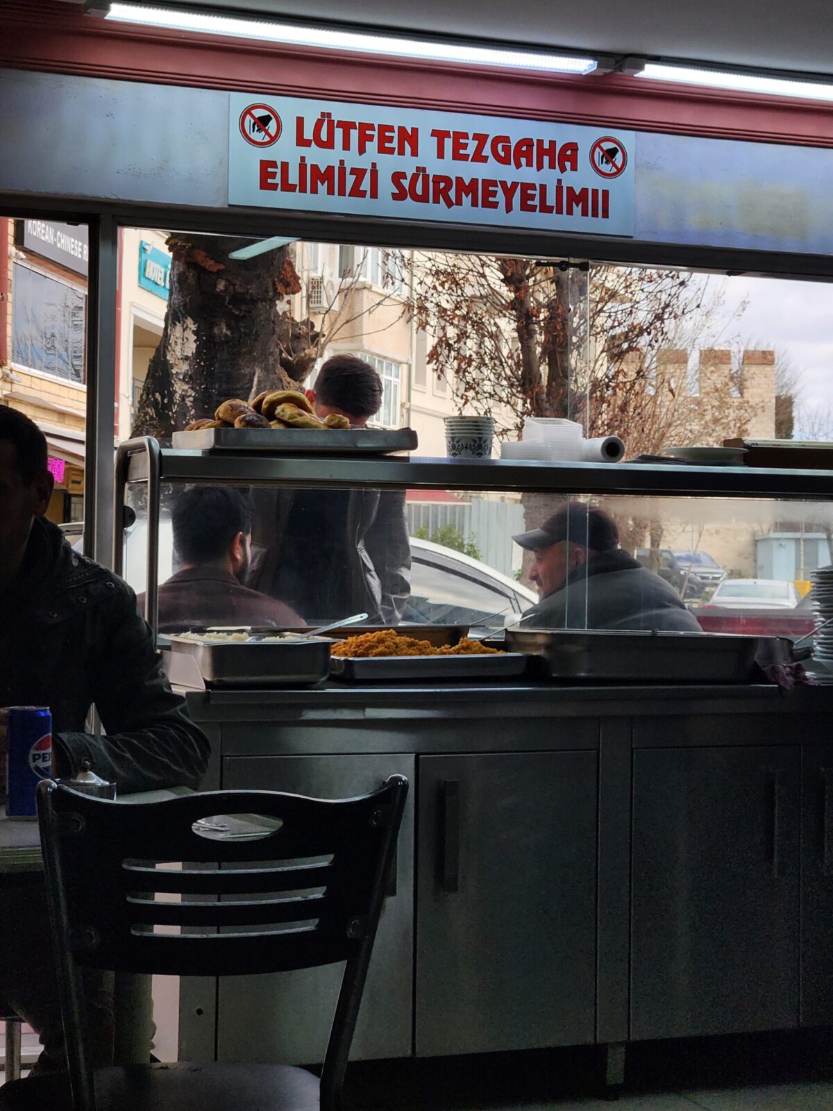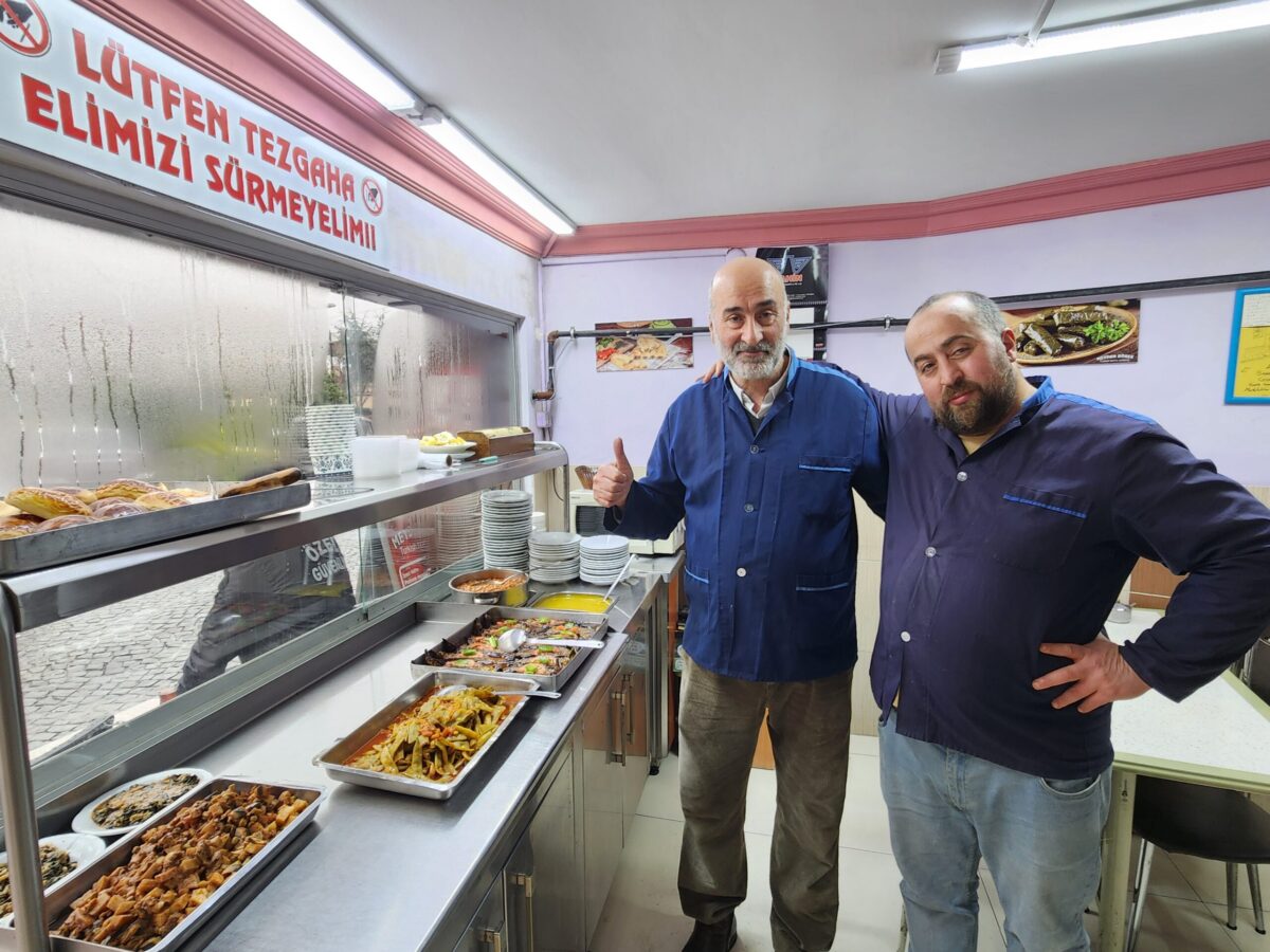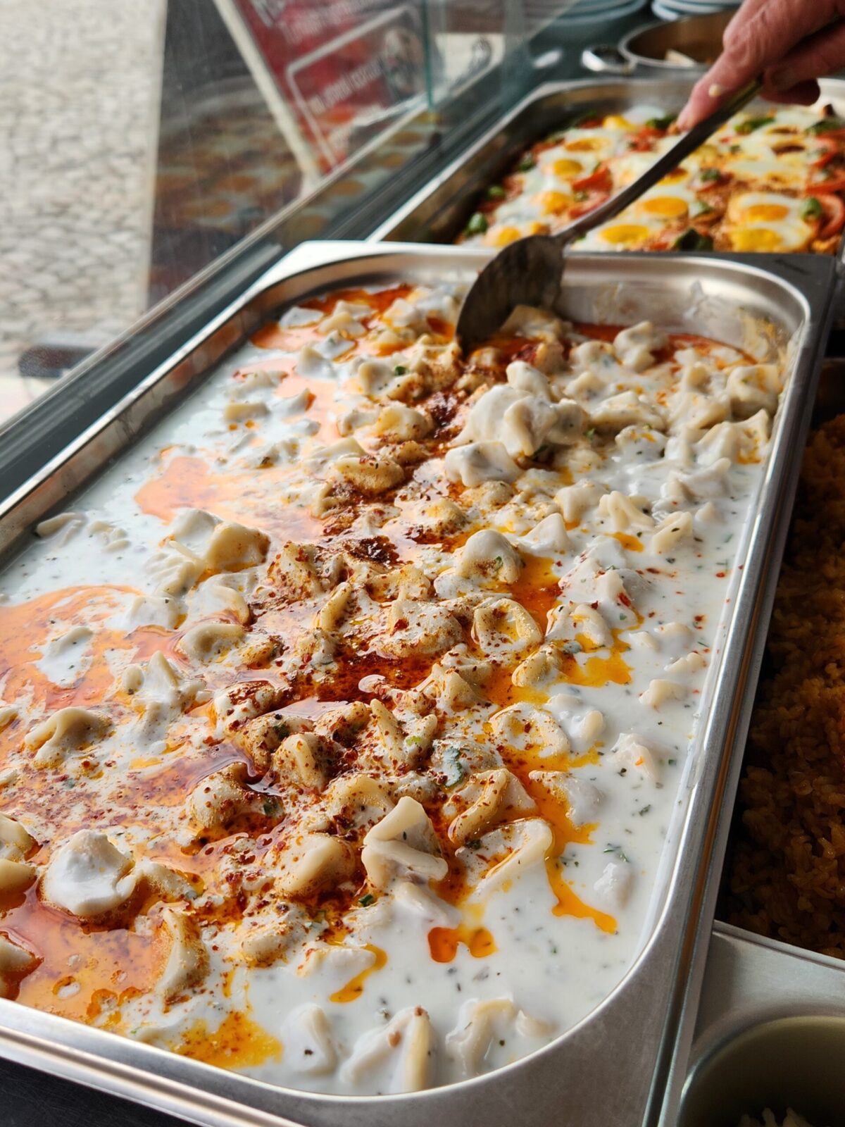 Die Ladenbesitzer, Vater Mutter Sohn, kennen mich bereits. Da ich bei jedem Male meine Begeisterung kundtue und wild herumfotografiere, bekomme ich von Babacım auch heute einen kleinen Probierteller hingestellt von dem Gericht, dass ich bisher noch nicht probiert habe 🙂